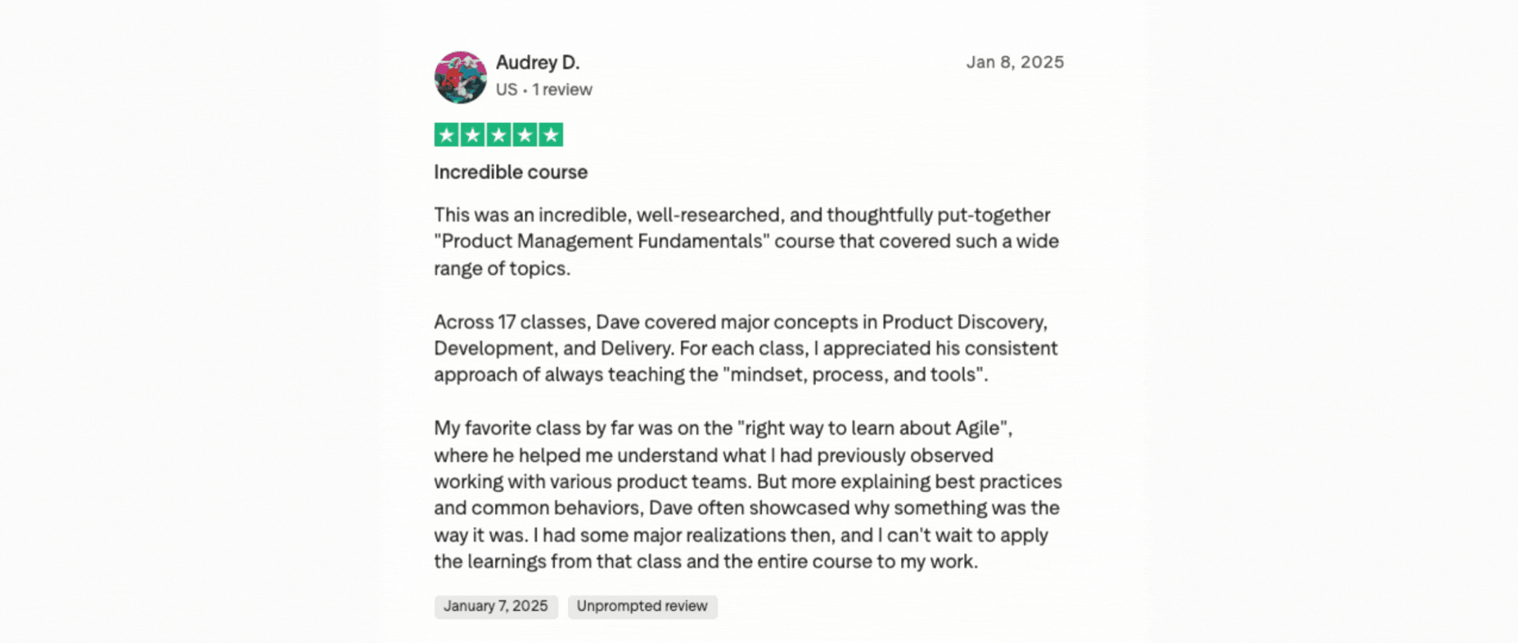 The Product Career Course:Â Write a resume that gets callbacks, stand out in interviews, and build a personal brand that gets noticed.